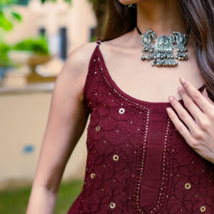 Radiate black's timeless charm with our elegant Chikan kurtis, crafted to add a touch of sophistication to any occasion.