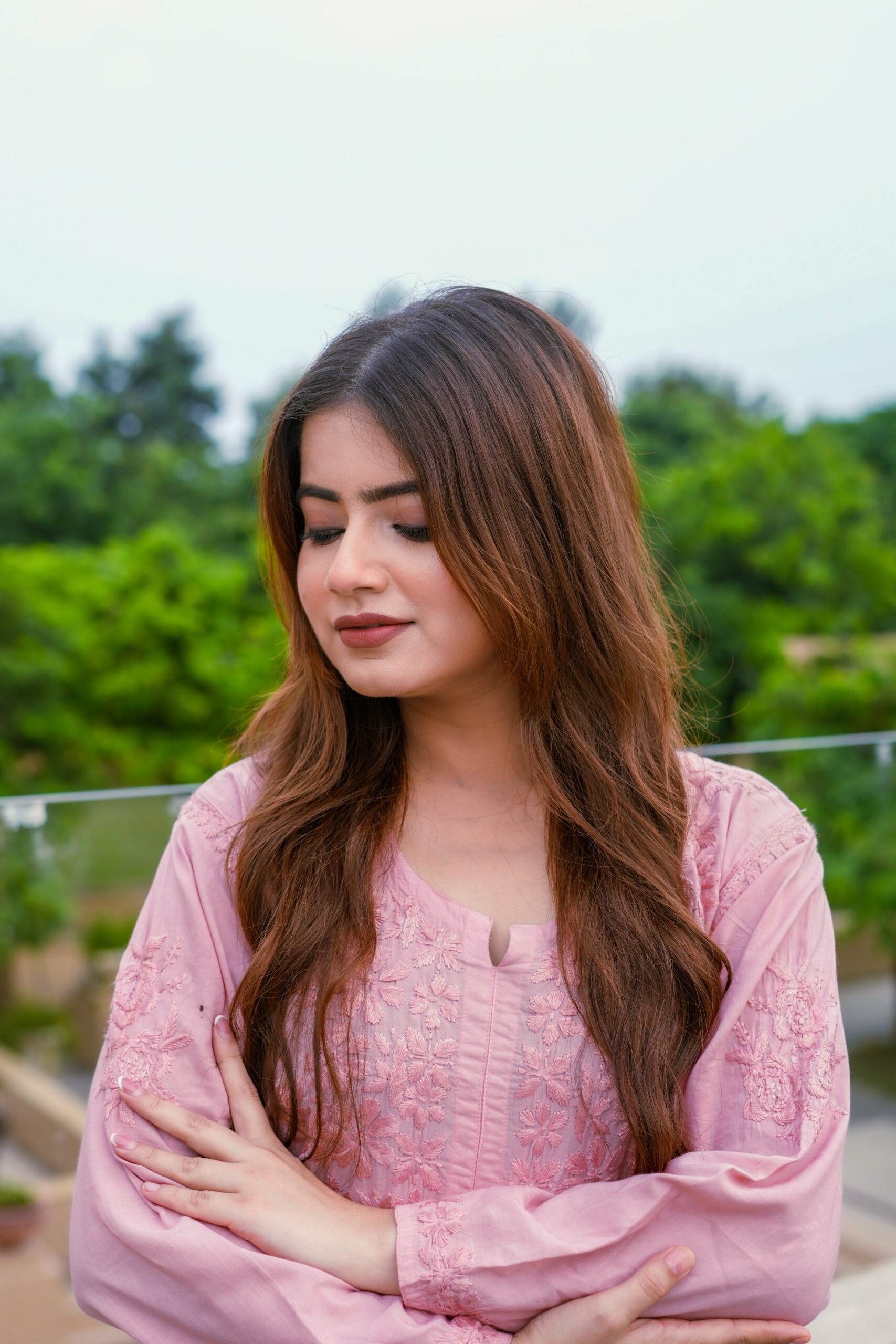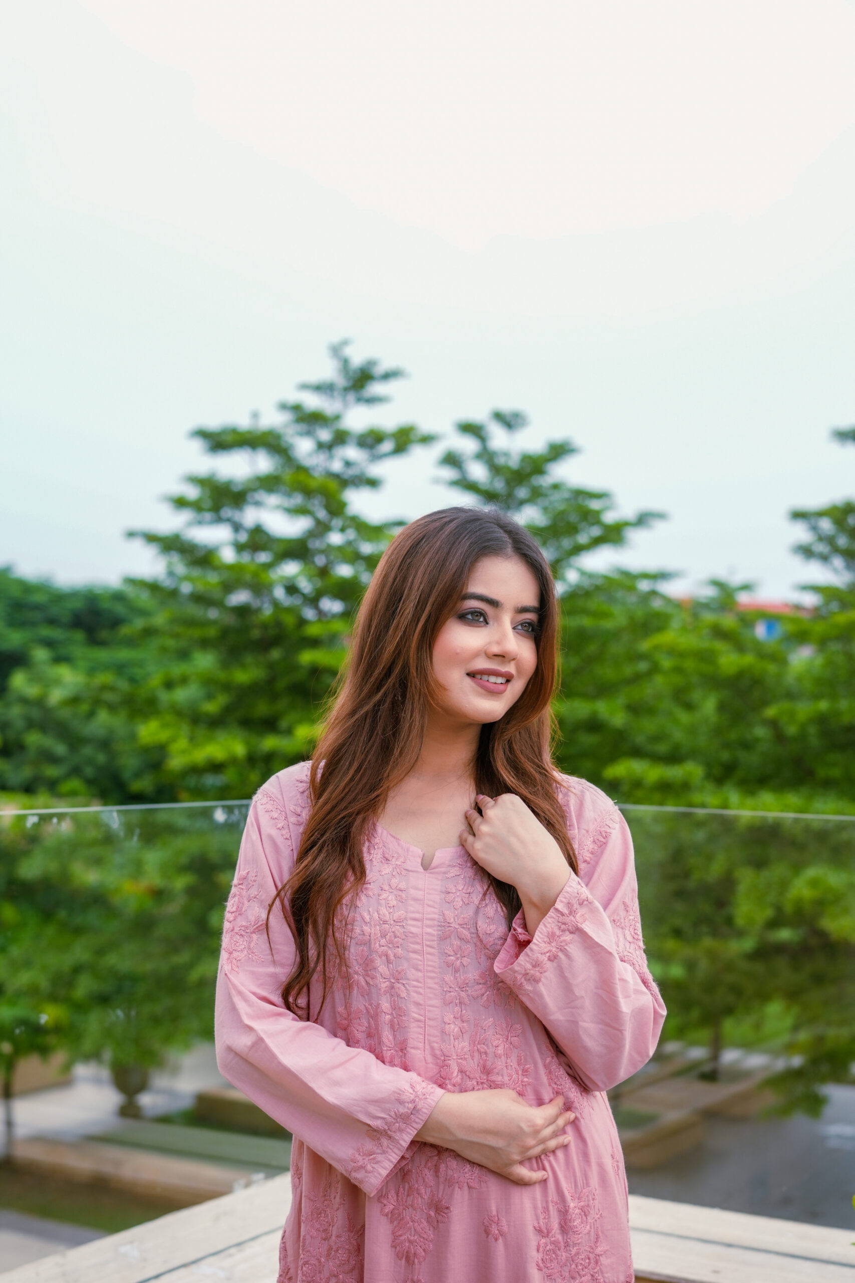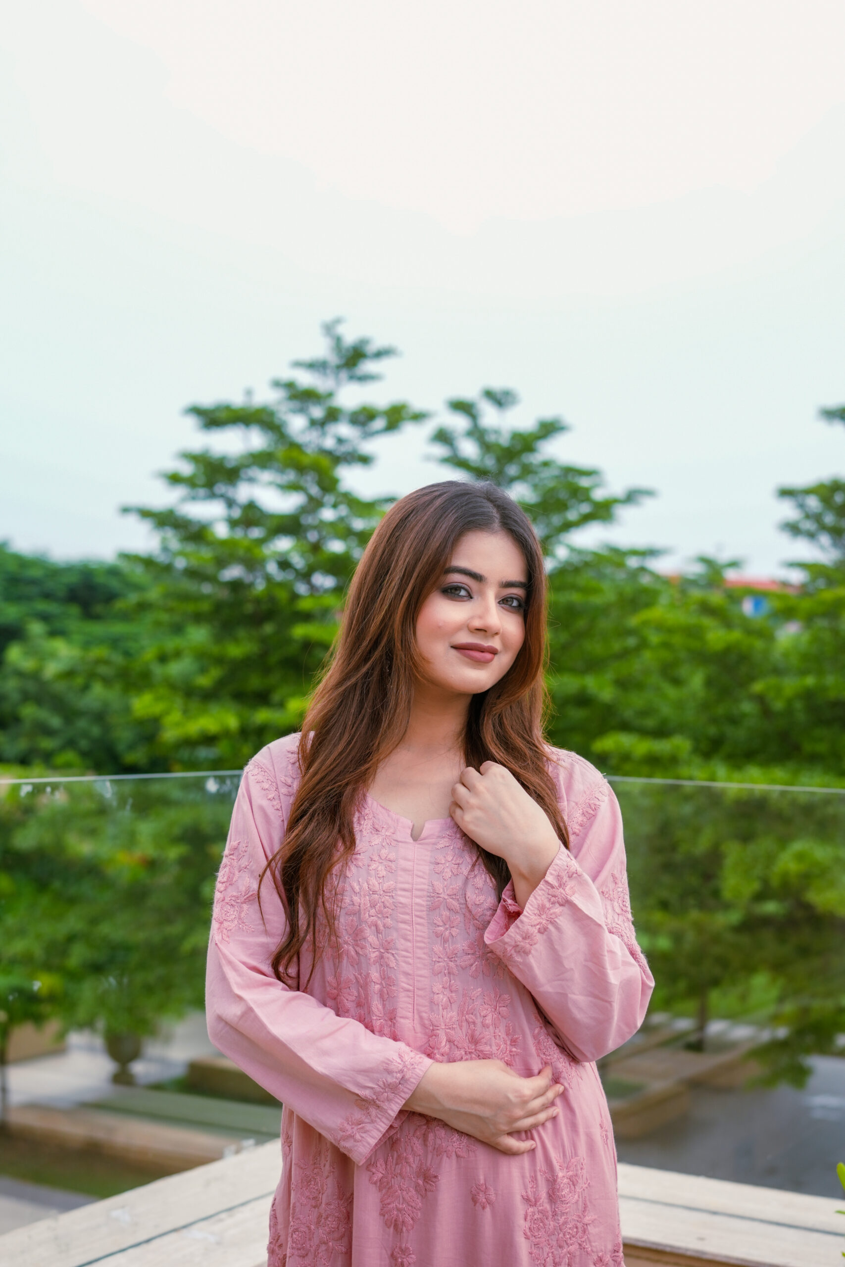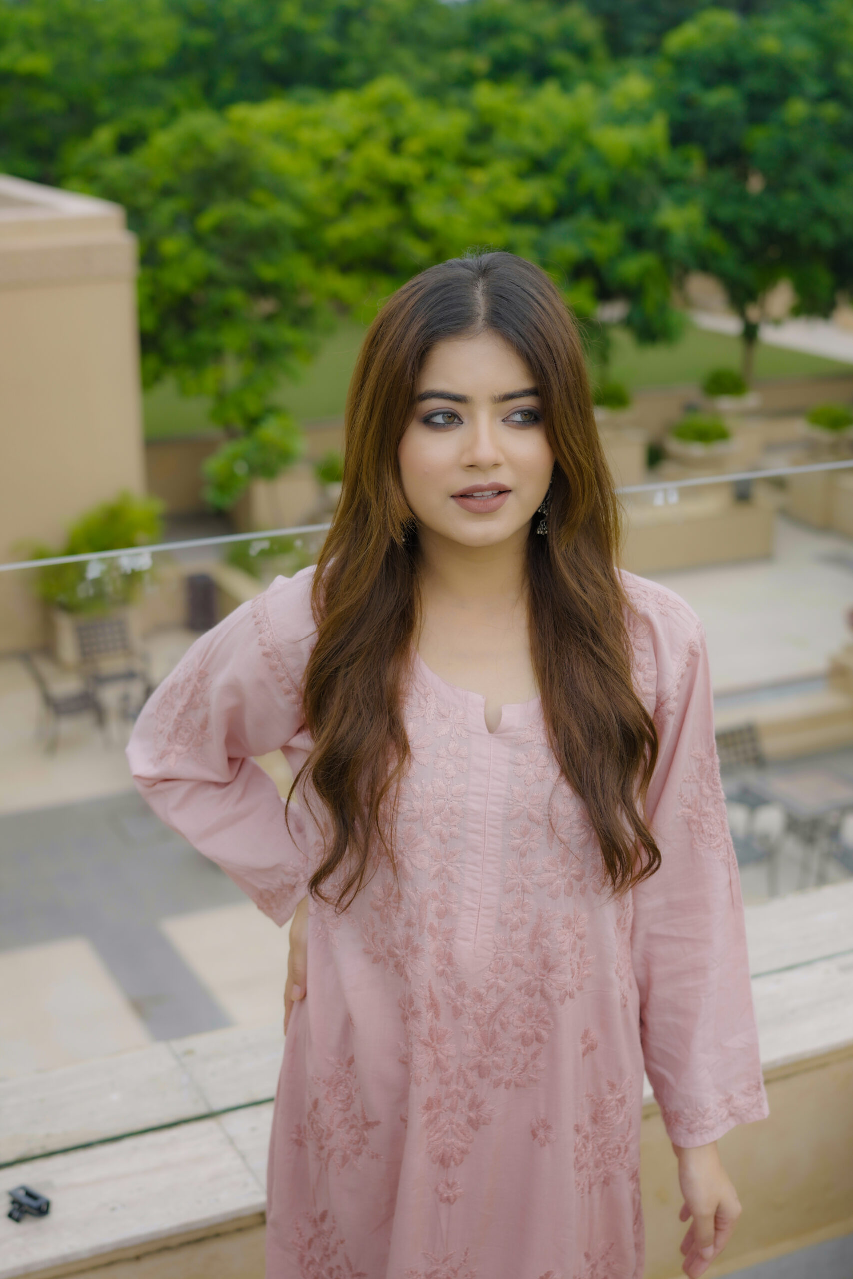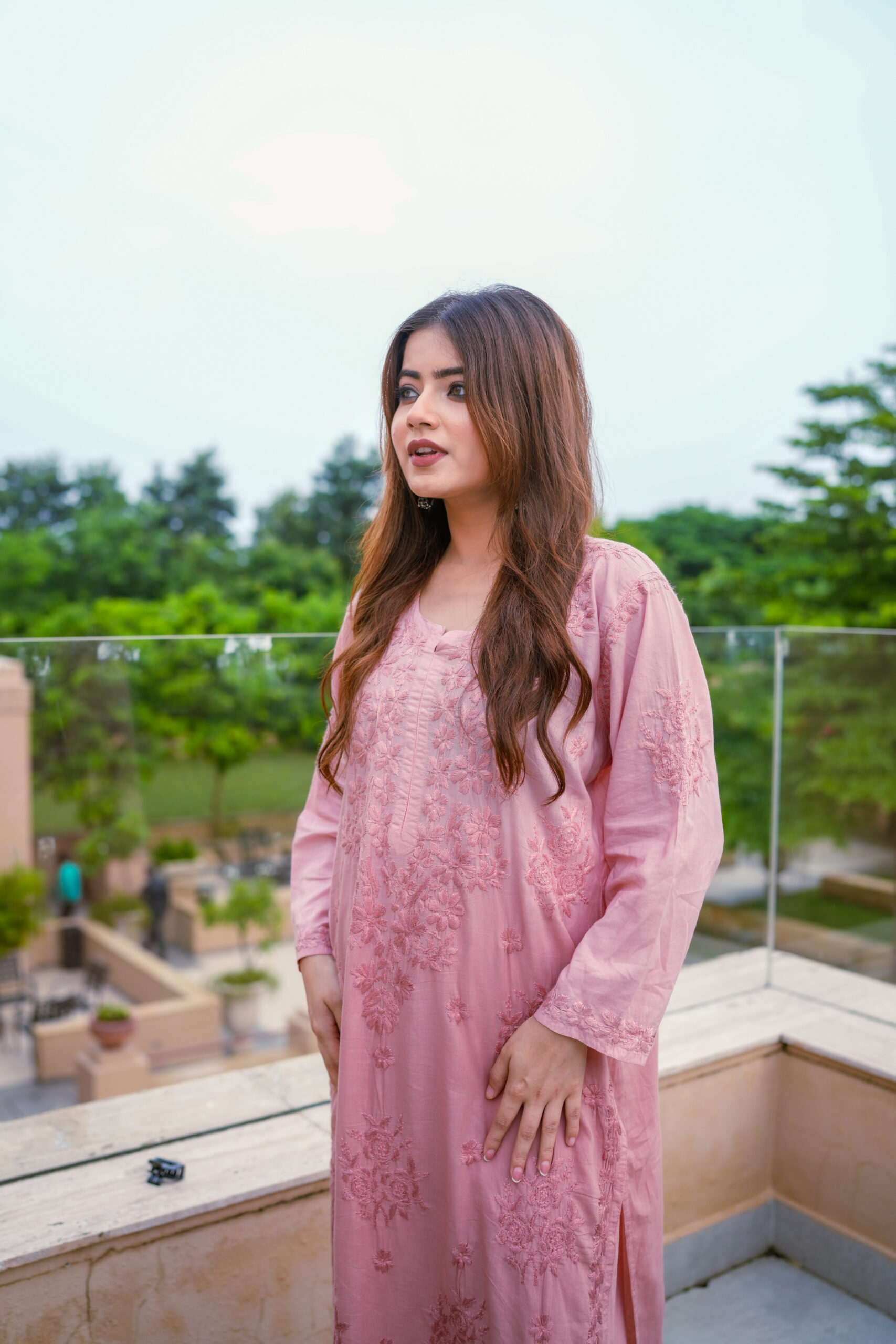 The kurta features detailed tone-on-tone embroidery that adds depth and sophistication without overpowering the silhouette. The soft pink shade enhances its feminine appeal, creating a timeless look that suits a wide range of age groups. Paired with coordinated bottoms, the set offers a balanced mix of modern and traditional design.