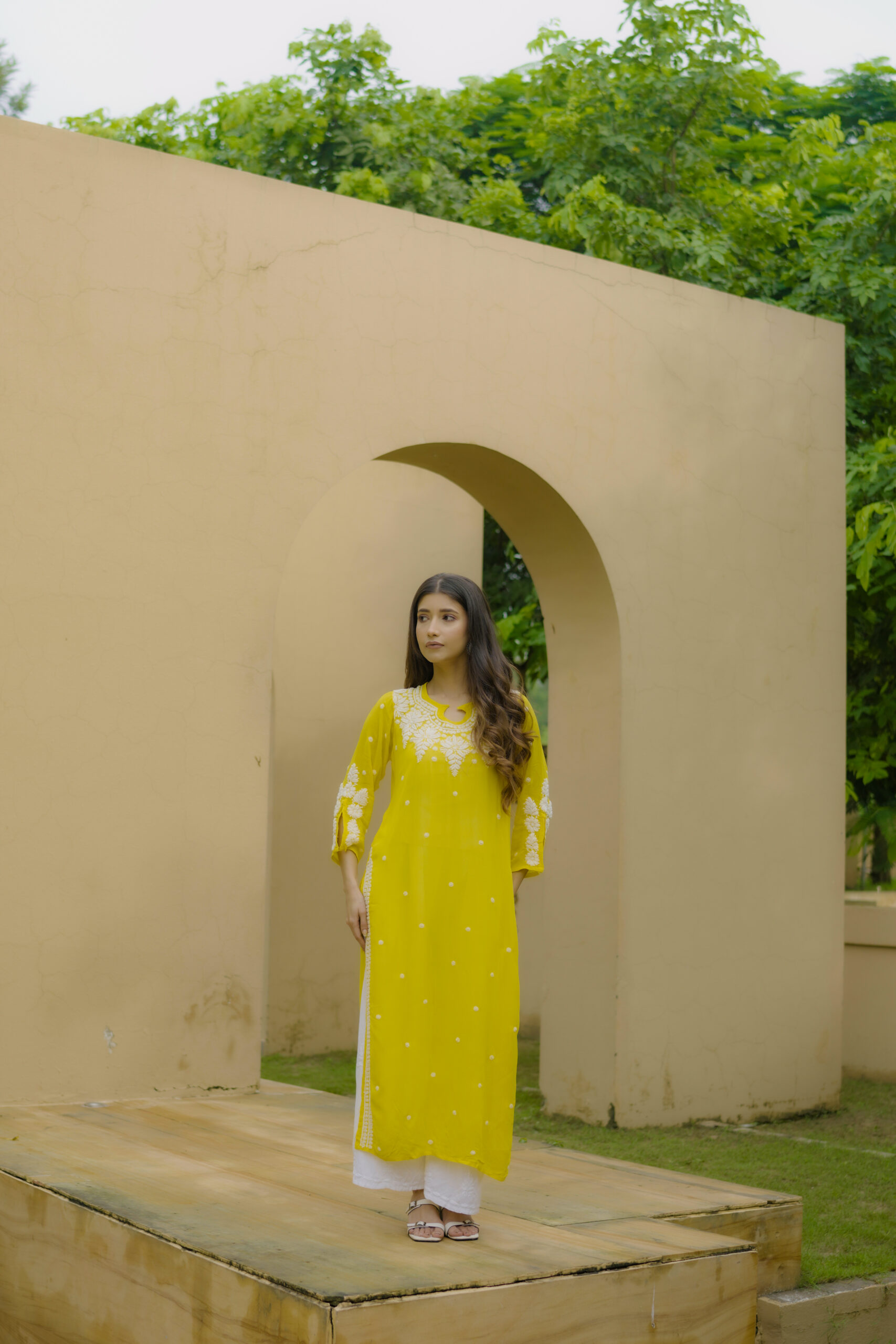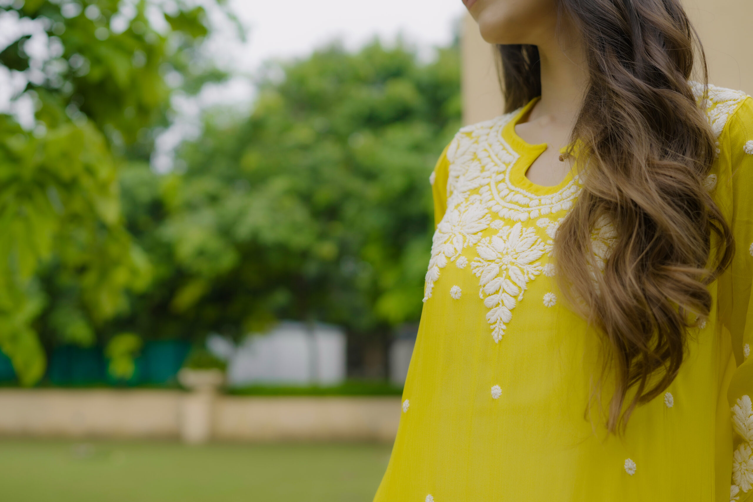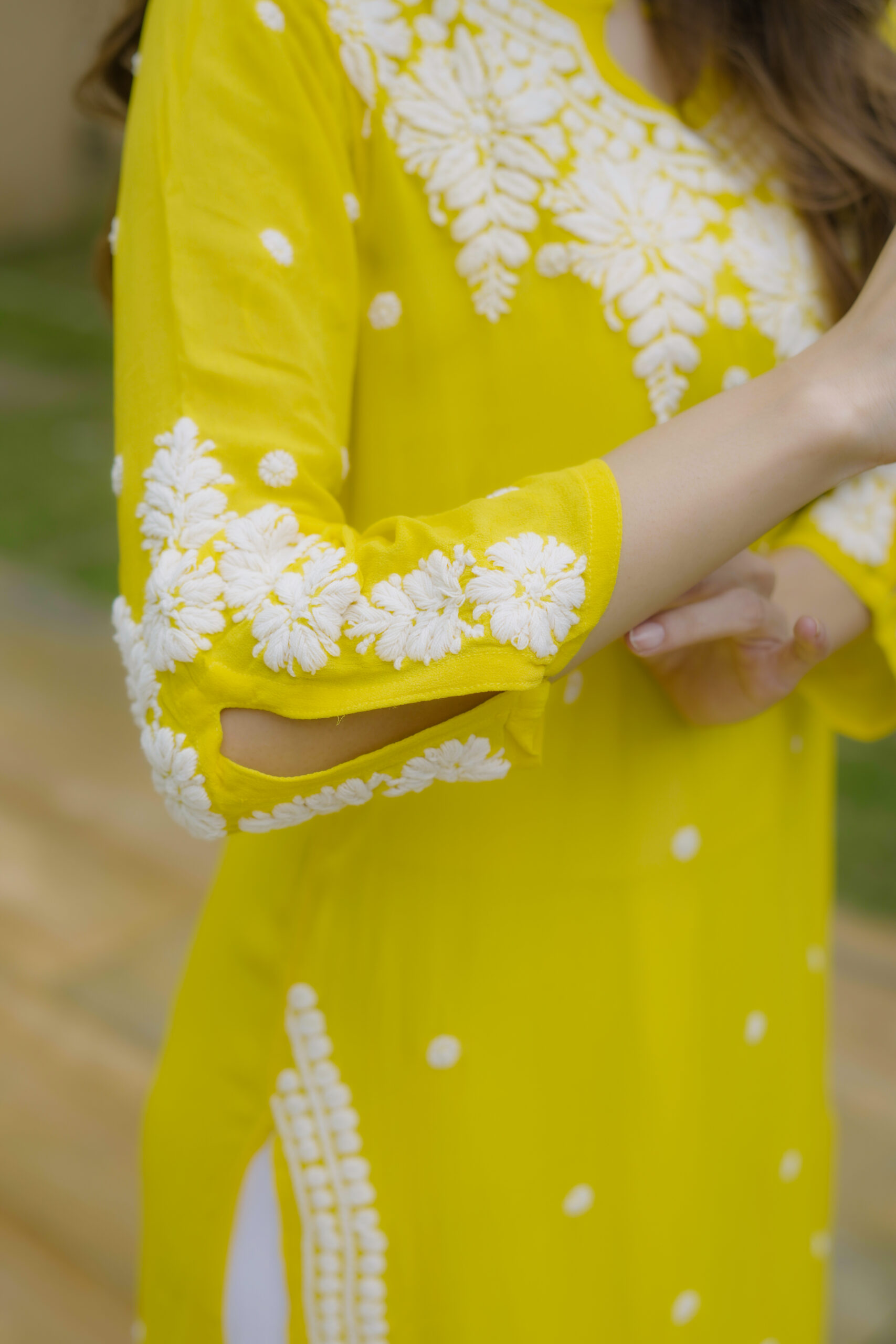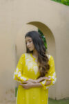 The soothing yellow shade adds a fresh, vibrant charm, while the intricate white threadwork across the neckline, sleeves, and front panel gives it a refined and timeless appeal. Whether you’re dressing for a casual brunch, a festive get-together, or a relaxed day out, this kurta brings together comfort, style, and handcrafted finesse in the most natural way.