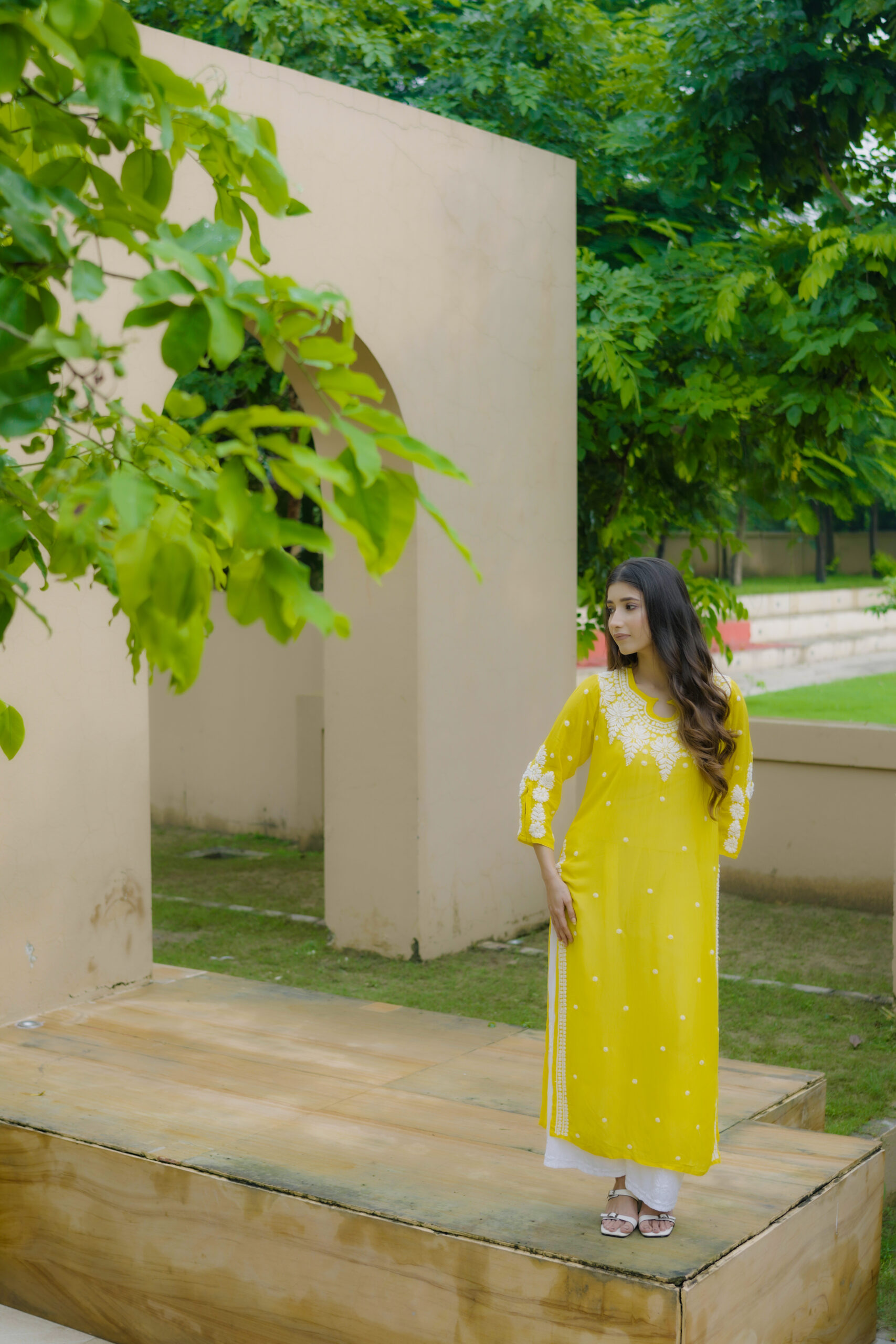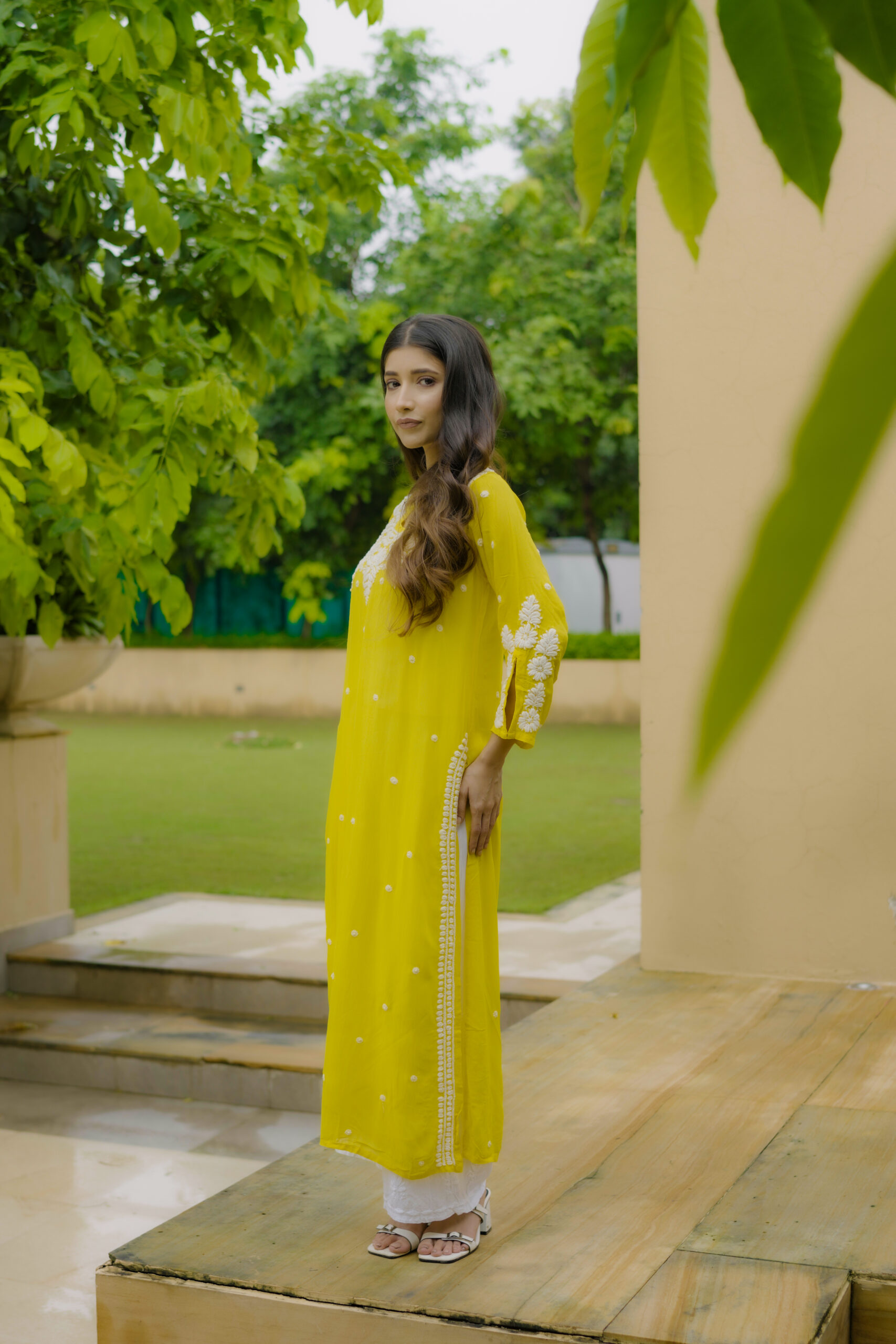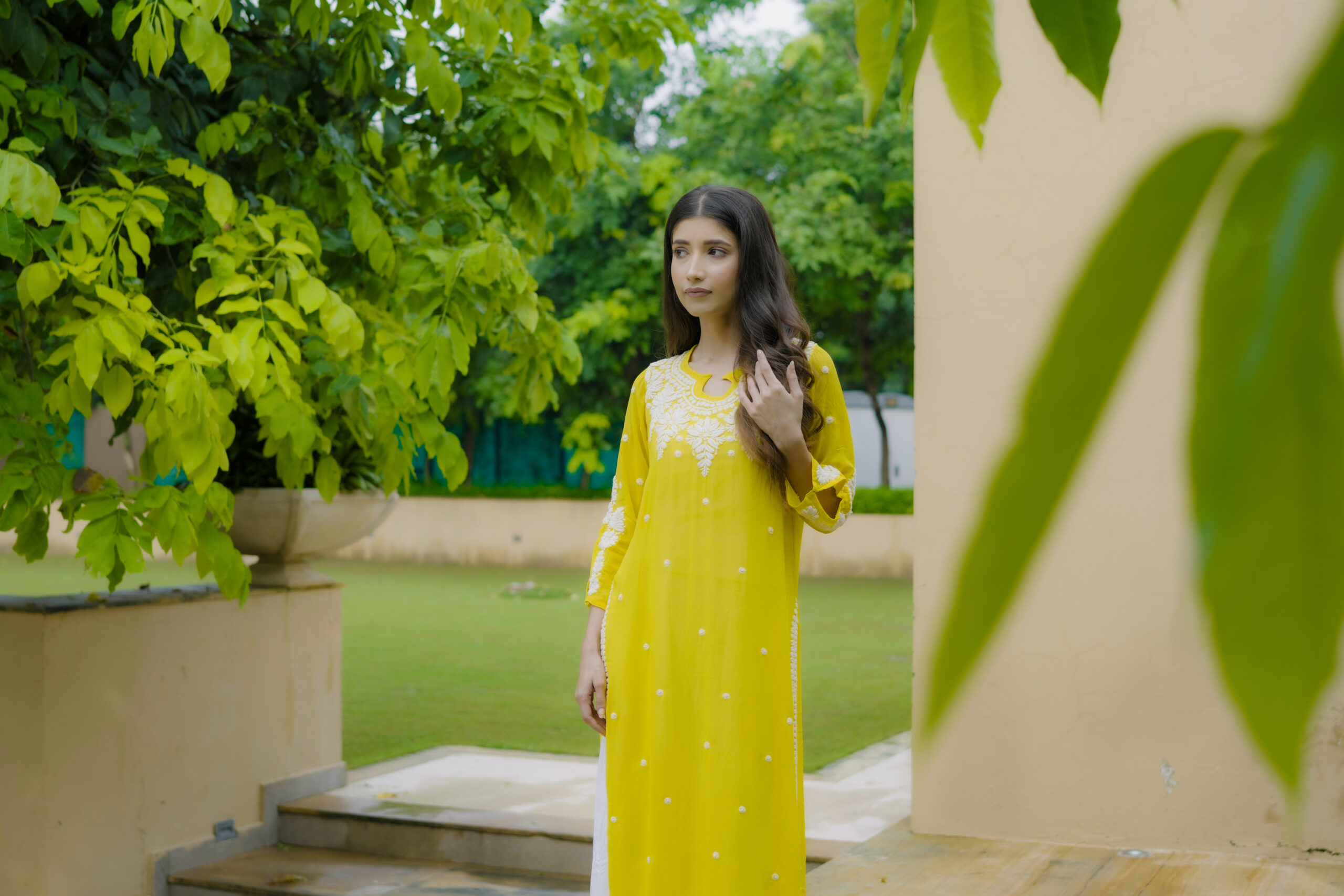 The soothing yellow shade adds a fresh, vibrant charm, while the intricate white threadwork across the neckline, sleeves, and front panel gives it a refined and timeless appeal. Whether you’re dressing for a casual brunch, a festive get-together, or a relaxed day out, this kurta brings together comfort, style, and handcrafted finesse in the most natural way.