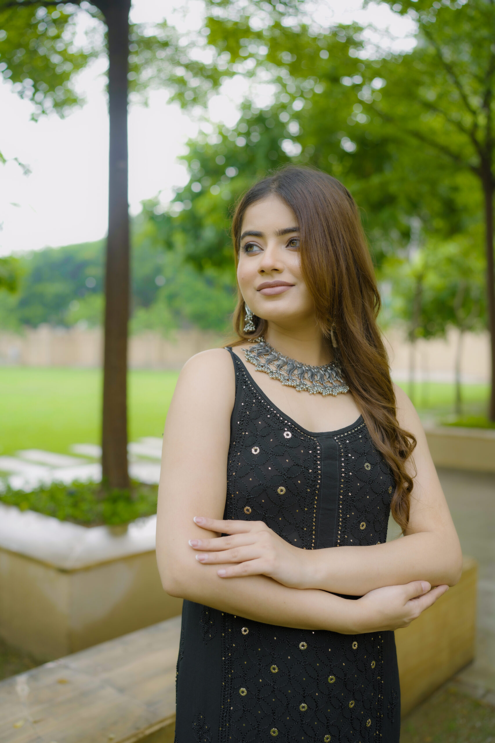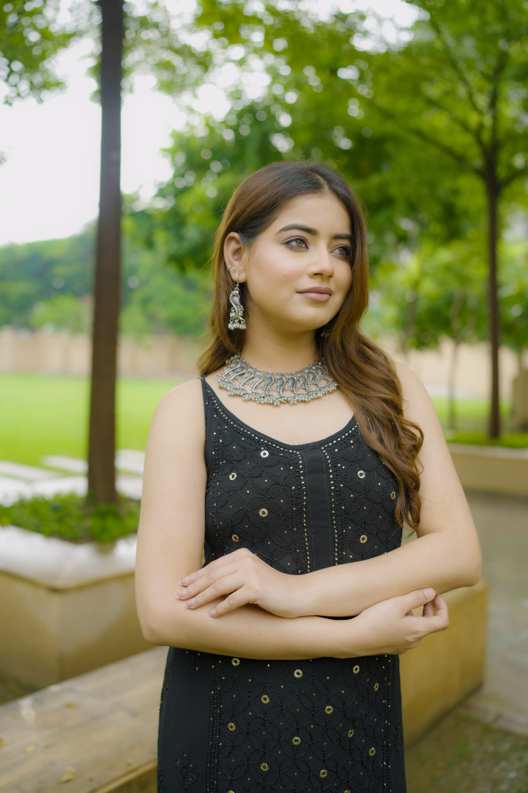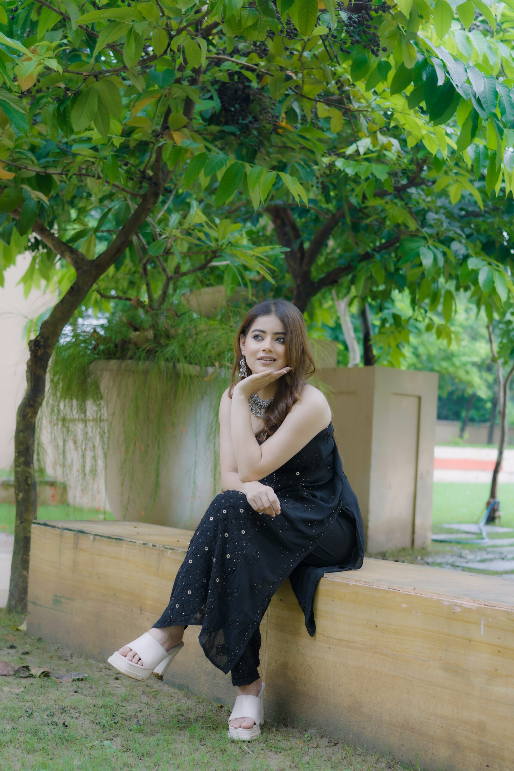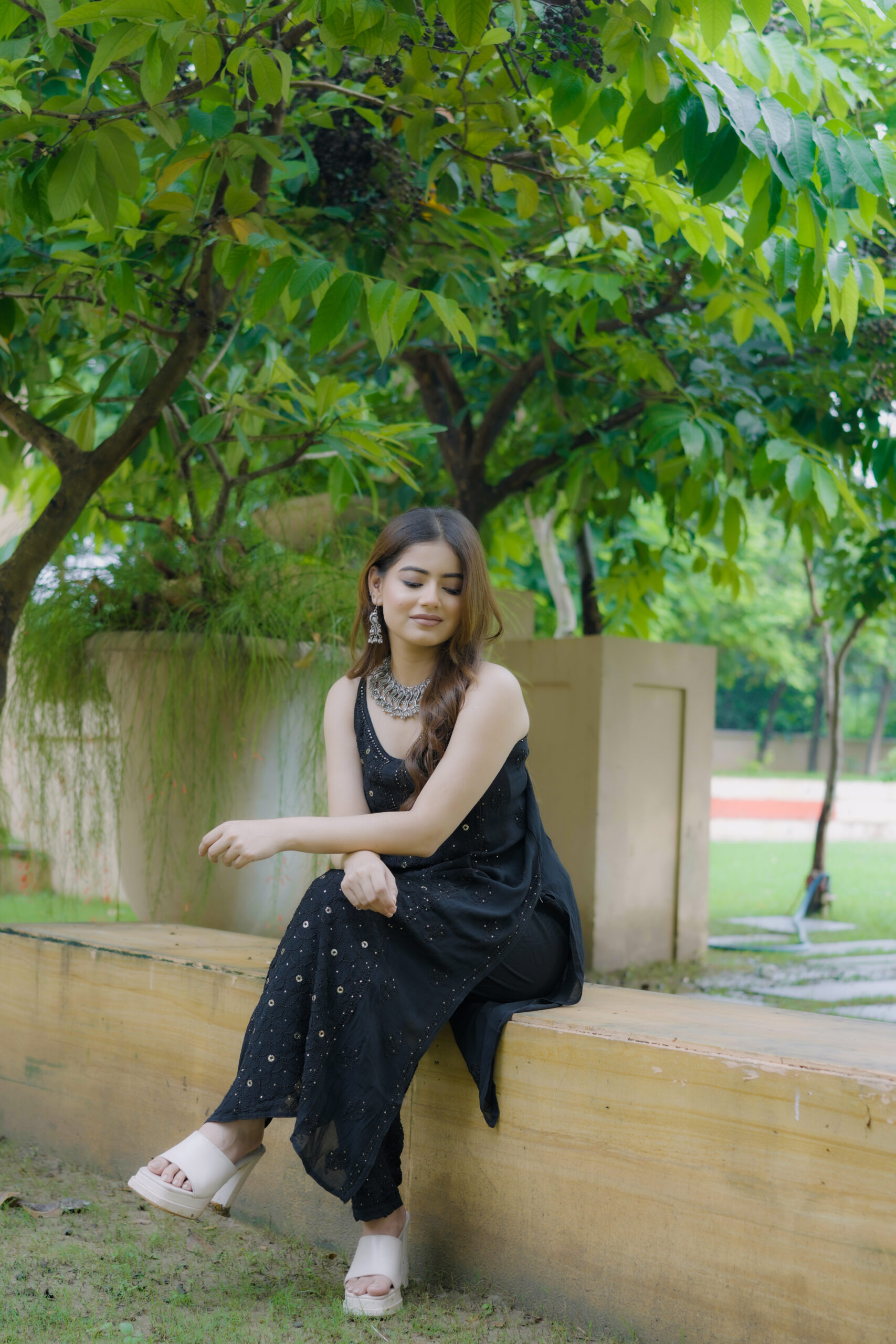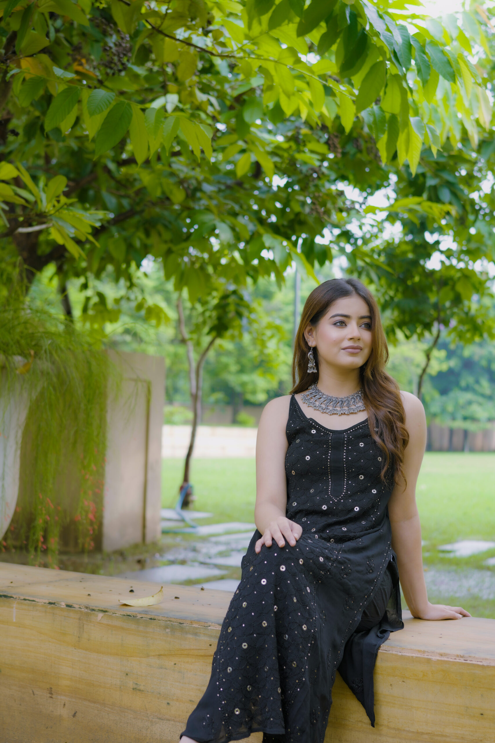 Available in One classic colour—Black, each shade complements the fabric’s natural sheen and highlights the delicate craftsmanship of the outfit.